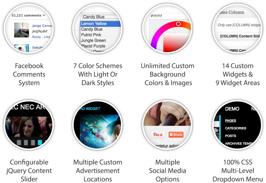 Almost every editable element of the ' Theme' can be controlled via the built-in Theme Options page.
